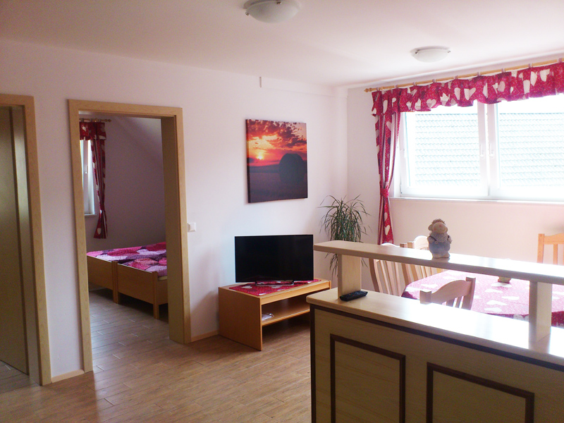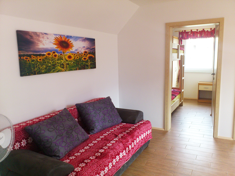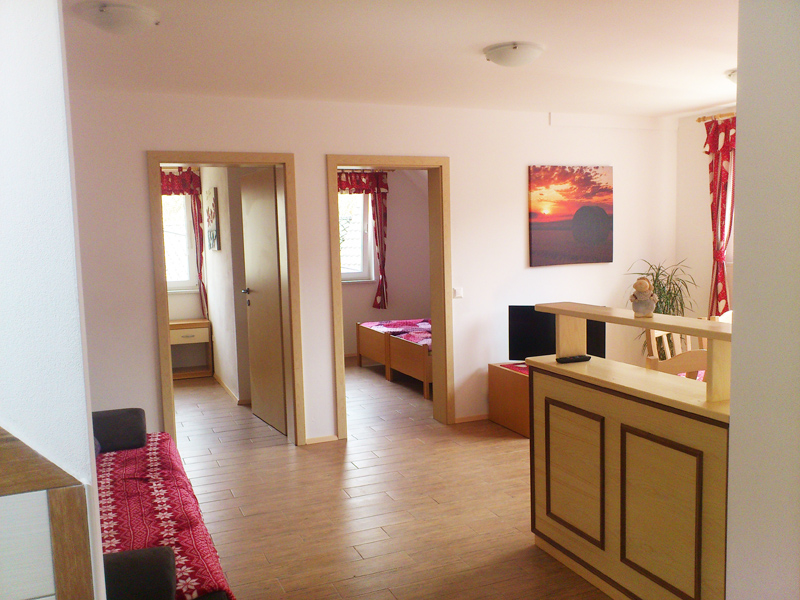 Apartma s kapaciteto do 6 oseb sestavlja kuhinja z dnevno, 2 sobi in kopalnica.